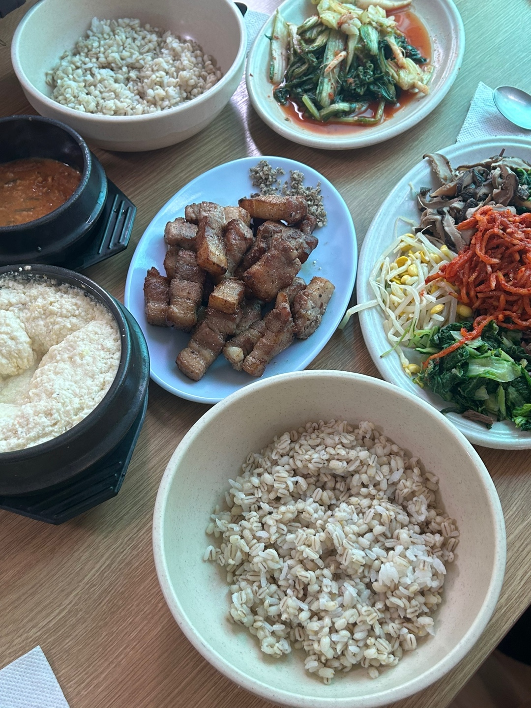 보리밥에 비빌 강된장도 나오니 기호에 맞게 넣으세요! 강된장은 짜니까 처음에 조금씩 넣으시고요!