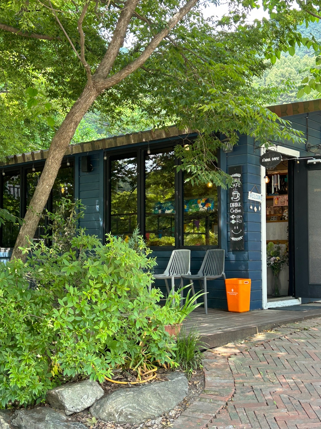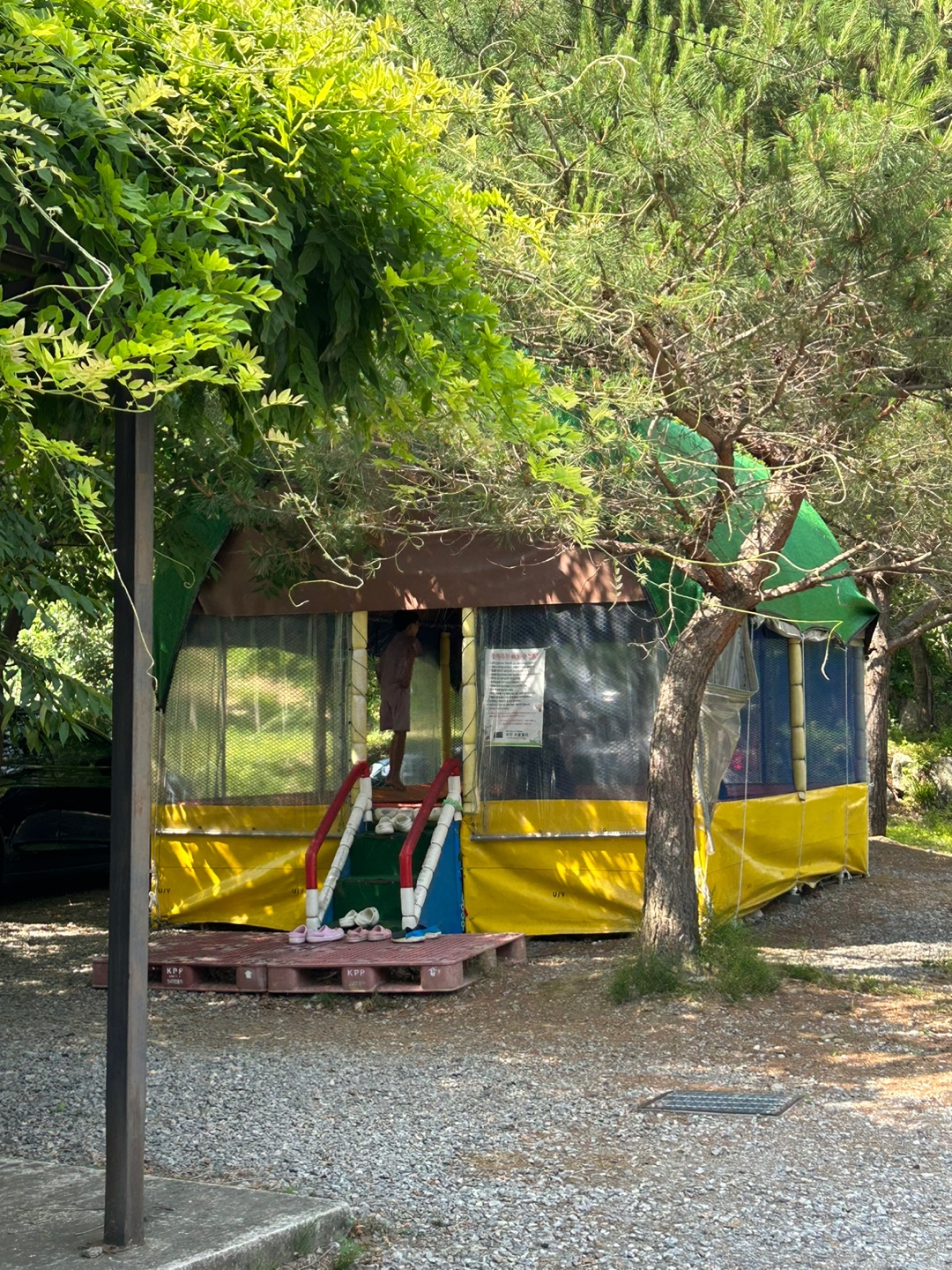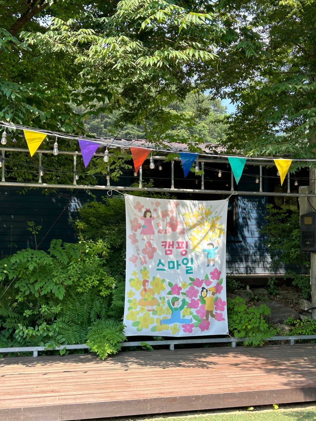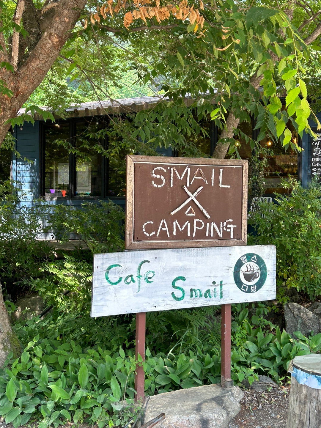 캠핑 스마일은 나무를 정말 잘 활용한 캠핑장같았어요. 이렇게 나무들이 많아서 그늘이 많이 만들어져 시원하기도 하고 곳곳이 초록 초록해서 어딜 둘러봐도 싱그러운 느낌 한가득이었어요.