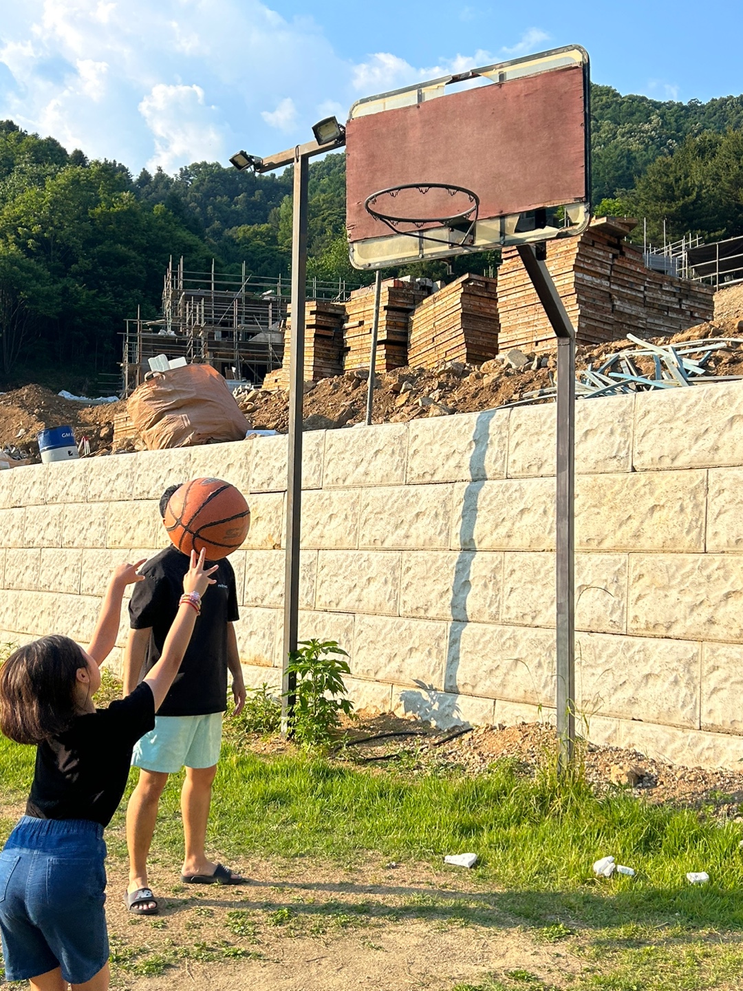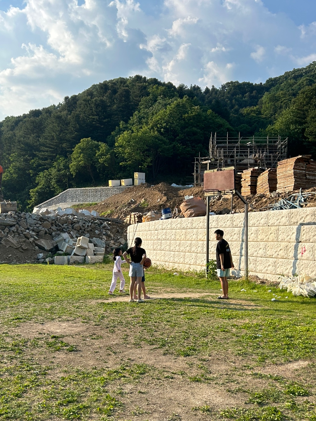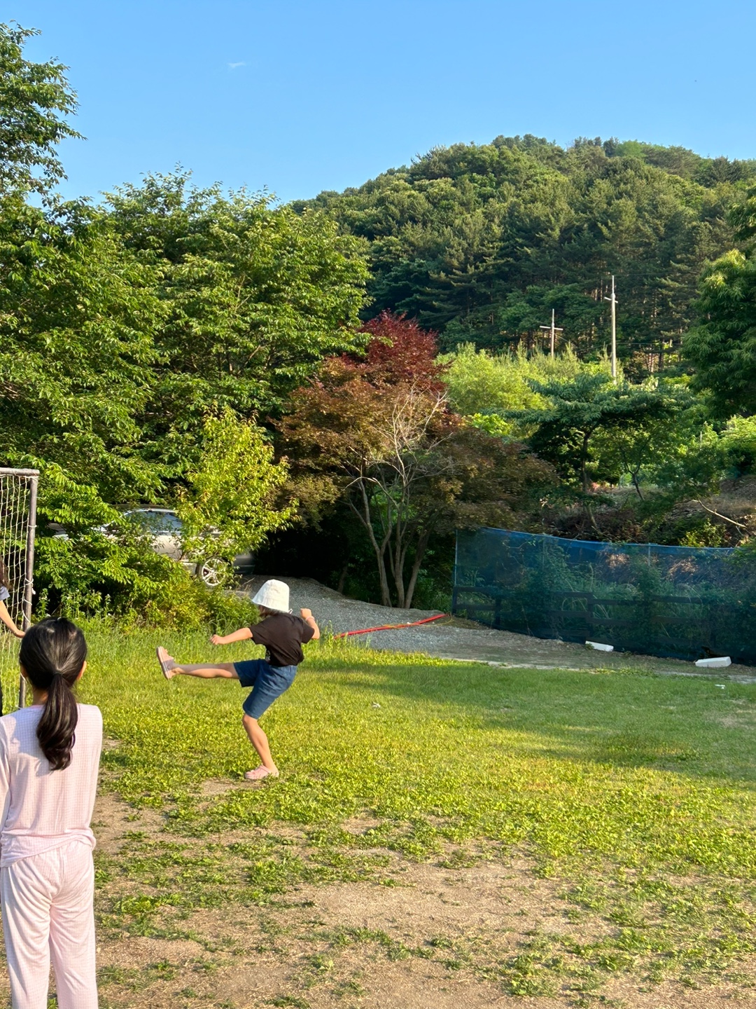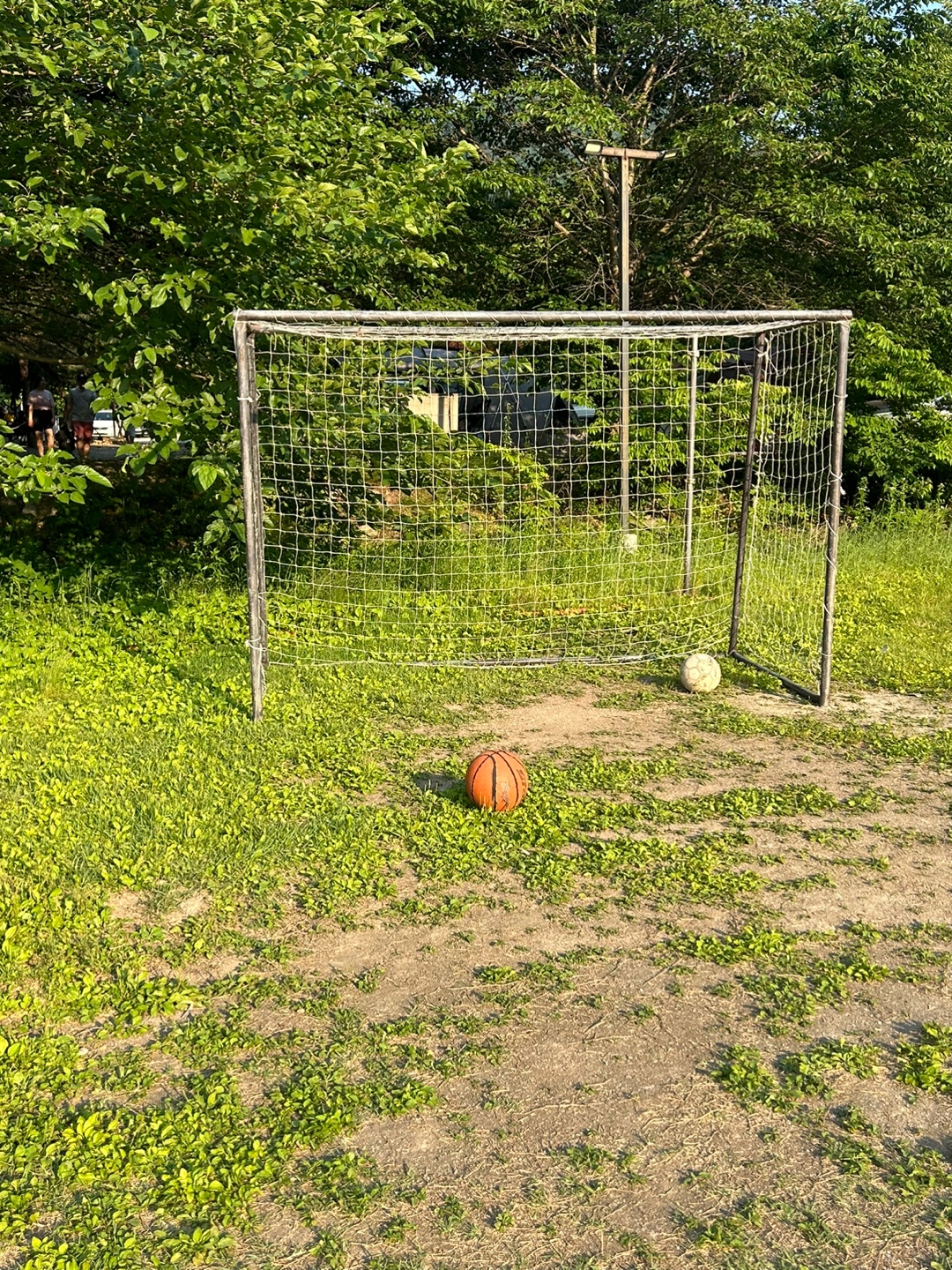 농구 골대 하나와 축구 골대들이 있어서 공놀이도 할 수 있어요.