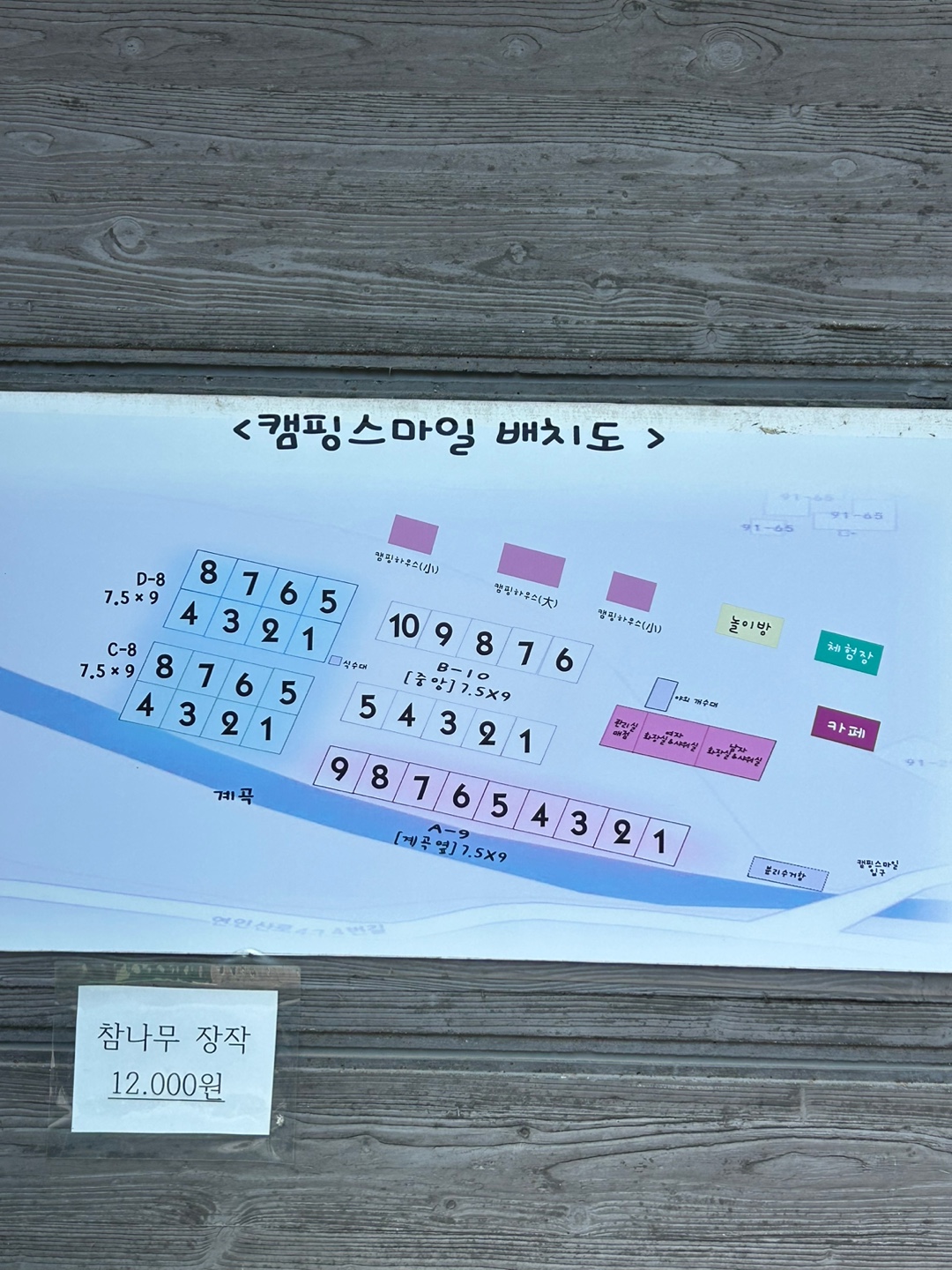 이제 캠핑 스마일의 사이트 가격, 배치도, 계곡, 부대시설에 대해서 설명을 해볼게요.