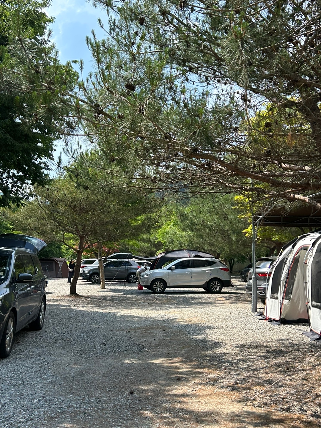 주차장이 따로 없이 사이트 옆, 앞에 주차를 해두어야 하다보니 아무래도 매너타임 시작인 밤 10시 이후로는 차를 이동하게 되면 엔진 소리와 라이트 불빛이 이웃 캠퍼들에게 방해가 될 수도 있기 때문이지요.
