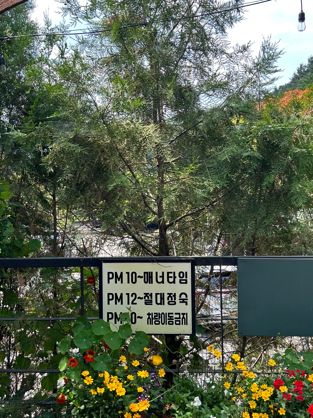 밤 10시부터 매너 타임, 12시 절대 정숙, 차량 이동은 10시 이후로는 금지입니다!